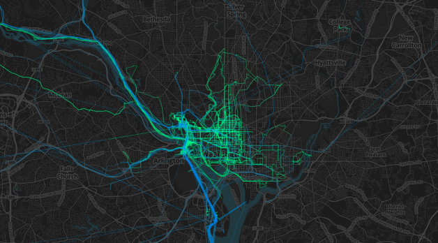 Adding a pretty cool visual element to the data I went ahead and mapped it. Seeing I’ve been a little all over the place within the last few months I can start to see how much of a city I’ve covered and if I’m ever back I can bike different neighborhoods.